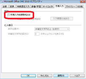 「予測入力を使用する」のチェックマークを外します。