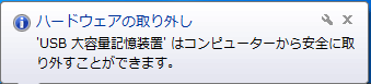 USBを取り外す際、