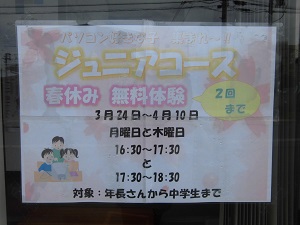 春休み ジュニアコースのキャンペーンを実施いたします。