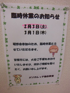研修のため、お休みになります。