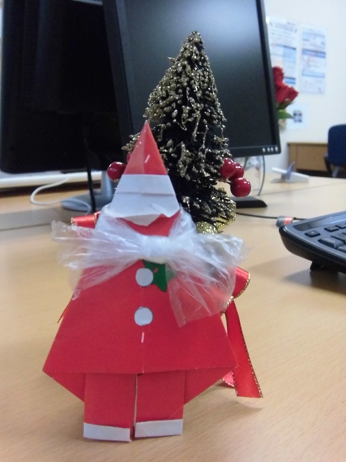 折り紙で作成したサンタクロースなど…。