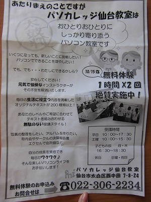 ただいま、パソカレッジ仙台教室では、