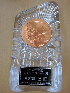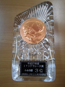 ITリテラシー大賞の賞状とトロフィーが届きました!!