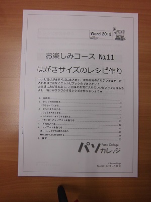 ワードでハガキサイズの大きさのレシピ集を作成しました。