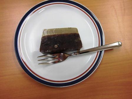 そして、ジュニアコースに通っているR君とHちゃんのお母様からいただいた羊羹を切ってみると、とってもお正月にふさわしい豪華な2層の羊羹でした~♪
