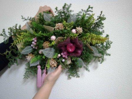 」ということで、Wさんは当教室のほかにフラワーアレンジメントのお教室に通われていると以前お聞きしていたのですが、毎年こんな風にこの時期リースを作成されているようです
