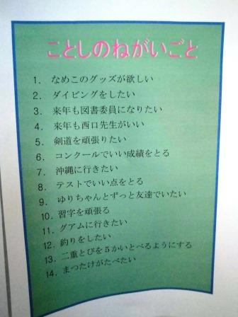 今現在の委員や担任の先生やお友達のことがことしのねがいごとに登場していて去年も充実した1年を送られた様子がうかがますね(*^_^*)