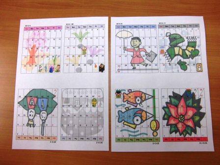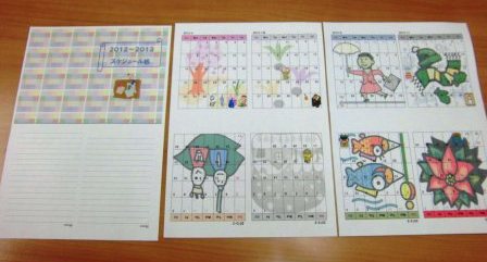 実は作成するときはA5サイズ横の用紙で、印刷する際にA4縦にページ設定をし直すという、なんとも不思議な作り方をしたり、印刷時にひっくり返した格好で逆さまになったものを折って仕上げたり、並べるカレンダーの月の順番が変則的になるので、かなり悩むのですが、それがパズルのようで頭の体操になるかもしれませんね^_^; 仕上がってみると、みなさんとても満足されています。