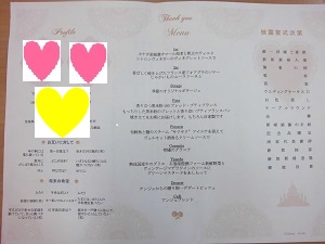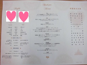 専用のテンプレートにメニューやプログラム、座席表を入力し、T君のお兄さんとお嫁さんの写真を入れて作成しました。