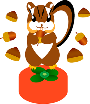 栗、柿、団栗のイラストを作成してみました(*^_^*)