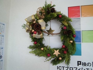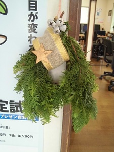 Wさんからクリスマスのリースと、お菓子をいただきました。