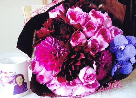 10月お誕生月だったMさん、ご友人からいただいた花束が以前教室でプレゼントさせていただいたカップにプリントされた花束に雰囲気がそっくりだった!ということで一緒に写真を撮って持ってきてくださったのです