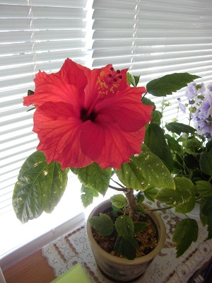 外の空気も徐々に暖かく感じてきましたね。教室の花達は最近ぐんぐん成長し、ハイビスカスの花が今日咲きました♪