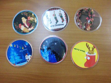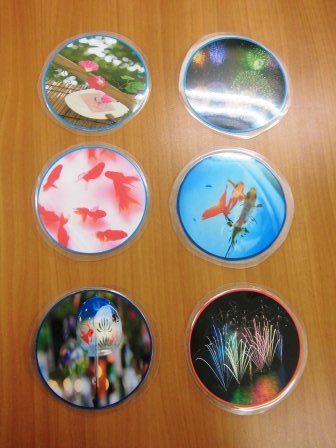 光沢紙に印刷し、カットしてラミネートをかけ、またラミネートすると こんなに素敵なコースターが完成です!
