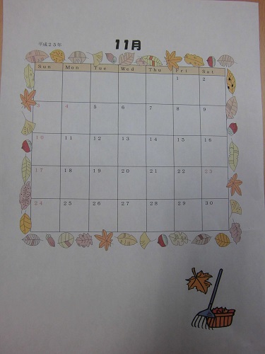 先日、Hさんが11月のカレンダーを作成されました(*^-^*)
