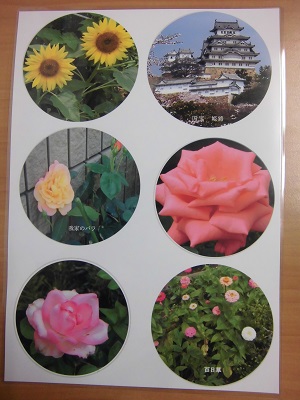好きな写真をワードに挿入して一般のA4サイズで印刷した用紙を、汚れないようにラミネート加工してあります。あとは丸の形に切り取るとオリジナルコースターの完成です。Iさんのコースターを教室で使わせて頂いていますが、他の生徒さんにも好評です♪Iさんの次の作品に期待しています♪♪