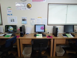 3台のパソコンに一人一人別々な検定のテキストを勉強中です!!