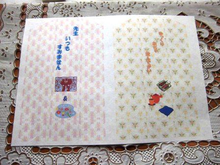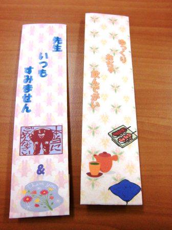 Mさんが昨日に引き続き、本日は箸袋を仕上げられました(^◇^) そのアイディアがとても面白くてお茶の時間に盛り上がりました~♪