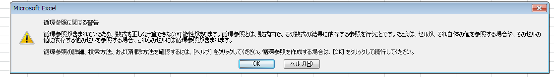 (↑循環参照の警告ウィンドウ