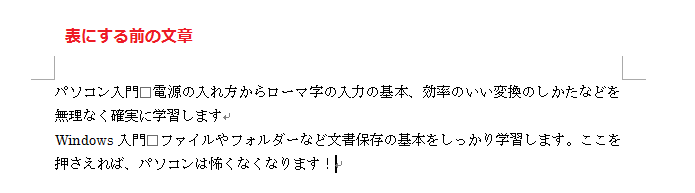 表にしたい文字列を選択し、
