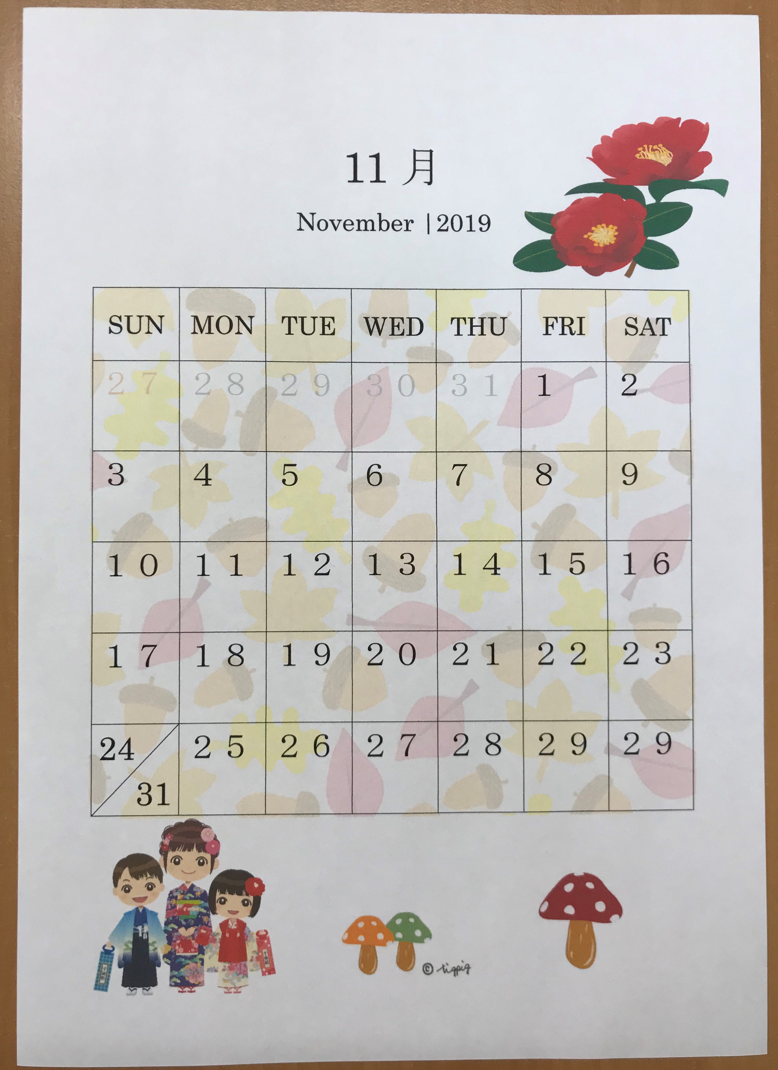 こちらはWさんがワードで作った11月のカレンダーです。