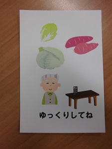 それぞれに好きな物をイラストで挿入し、ゆっくりしてね。と、