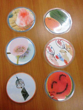 「コースターっていうと、夏に使うものっていうイメージがあるから、夏のテーマでつくりたいの」 そうおっしゃって、夏の風物詩で12枚のデザインを決めました(^-^)